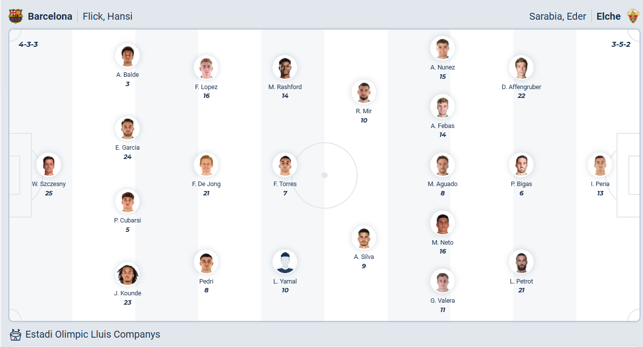 Barcelona để thua 2/3 vòng gần nhất trong đó có trận thua trước chính đối thủ cạnh tranh Real Madrid, từ vị trí đầu bảng giờ họ đã để đối thủ bỏ xa 5 điểm. Mùa giải còn rất dài nên cơ hội bảo về ngôi vương vẫn còn nhiều, để nuôi hy vọng đó thì thầy trò HLV Hansi Flick không có cách nào khác ngoài việc thắng các trận đấu của mình. Họ cần thắng luôn ở vòng này trước Elche để vực dậy tinh thầnh các đầu thủ. Đối thủ yếu hơn nhiều nên cơ hội thắng của Barcelona rất cao, cộng với lợi thế sân nhà thì khả năng kịch bản đó sẽ xảy ra.