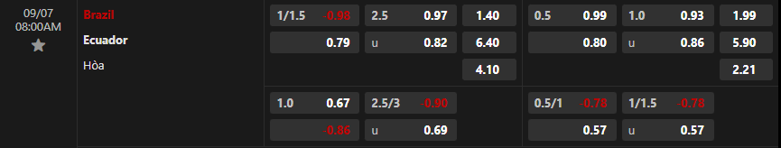 Soi kèo châu Á Brazil vs Ecuador