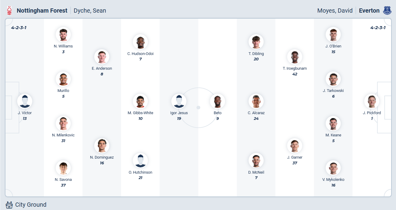 Nottingham khởi đầu mùa giải năm nay vô cùng tệ hại và từng nằm trong nhóm cuối bảng, HLV Sean Dyche đến và đội bóng này đã lầm tốt hơn. Nhưng họ mới để thua 2 cả 2 vòng gần nhất thua 3/4 trận gần nhất, kết quả đó khiến họ tụt xuống vị trí thứ 17 trên bảng xếp hạng. Rõ ràng HLV Sean Dyche vẫn còn nhiều việc phải làm để giúp Nottingham trụ hạng mùa này và họ cần một kết quả tốt ở vòng đấu thứ 19 này để tích lũy điểm số. Tuy nhiên Everton chưa bao giờ là đối thủ dễ chơi, nhiều khả năng Nottingham sẽ chỉ có được một kết quả hòa ở trận đấu này.
